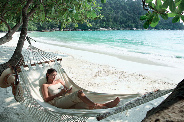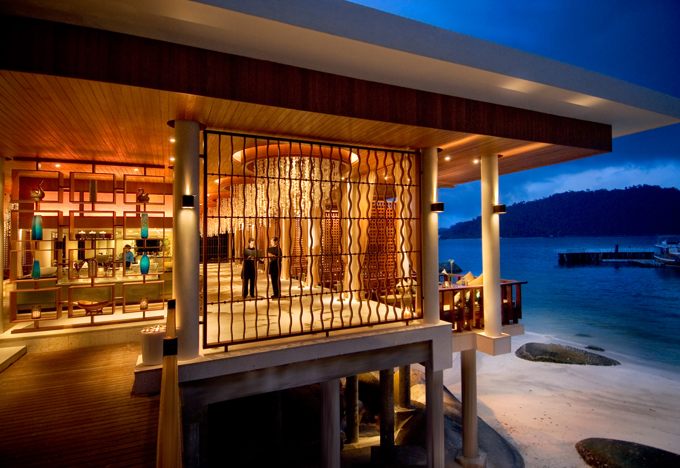 靜與隱私,不受塵囂世俗的干擾,是Pangkor Laut Resort給予遊客的保證!因為這裡除了工作人員就是住客,再者,就是海濤拍岸聲及叢林內的蟲鳴鳥叫聲不絕於耳,湛藍海水及潔白細沙映入眼簾,更有蔥鬱雨林和活躍的動物伴隨。而綠中海島嶼國際度假村便是座落在這樣不可多得的人間仙境,而且設施規畫更與自然環境融合,地理位置依山傍海,前擁皇家灣和珊瑚灣,村內設置3個不同類型游泳池,各具特殊造景,其中位於珊瑚灣的泳池前方設有水上活動中心,免費提供釣具、浮潛用具,遊客也可自費參加潛水、滑水或乘遊艇出海一遊。