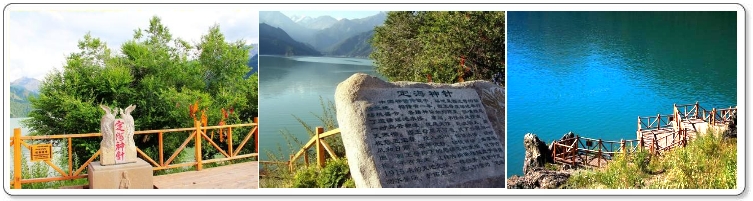 南山望雪:游客佇立天池冰磧堤壩上,翹首南望博格達雪山,但見“遠處皚雪近處松,野花似錦綠偎紅。湖光山色潑墨畫,春夏秋冬一景融”。觀此勝景,如臨仙境,令人飄然蕩魂。 西山觀松:天池西側山勢相對緩和又位處陰坡,由冰磧石和泥石流堆積物組成的山坡比較疏松,蓄水條件好,特別適宜於林木的生長。這裡雲杉林連峰續嶺,濃陰蔽日,是旅游最好的去處。“西山松”,令人賞心悅目,心曠神怡。 海峰晨曦:清晨天池觀日出,較之泰山觀日出別有一番情趣。在晨曦中天山的冰峰、杉林與色彩斑斕的湖水融為一體,使人猶如置身仙境。有詩贊曰“雲遮霧繞萬仞隱,晨曦初露景色新。五彩霞光呼日出,博峰含笑看盛景”