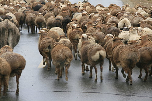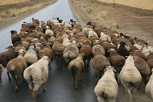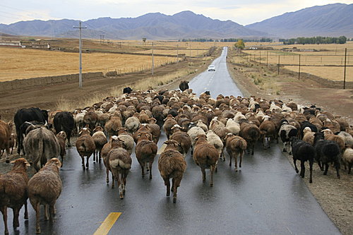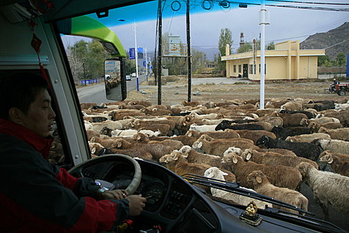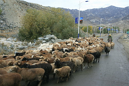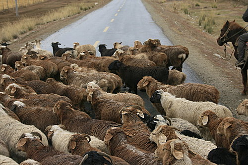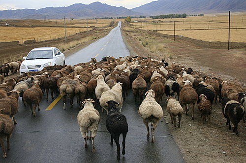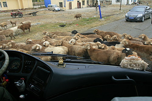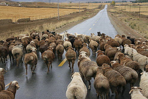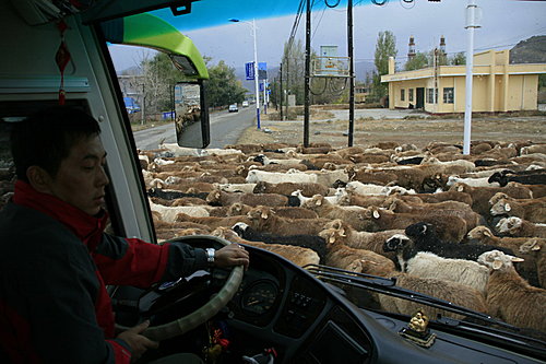當一大群羊,全部擠在車頭前"作秀"的時候 ,這裡的司機(師傅)沒有三兩三是不敢在這開車的!
