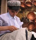 是維吾爾族的傳統手工藝品,造型別致,制作精巧,既可作刀具,又有藝術欣賞價值,是頗具特色的絲綢之路旅游紀念品。英吉沙小刀多數為彎刀,刀把有木質的、角質的、銅質的、銀質的,非常講究。無論哪一種刀把,英吉沙的工匠們都要在上面鑲嵌上色彩鮮明的圖案花紋,有的甚至用寶石來點綴,玲瓏華貴,令人愛不釋手。除英吉沙的小刀外,庫車的“孔雀刀”也已遠近聞名。少數民族男子都有佩帶小刀的習俗,身邊能有一把華麗別致的小刀,便平添一種風度。
