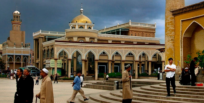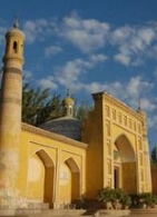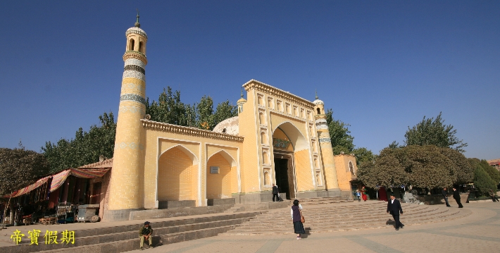 坐落于新疆維吾爾自治區喀什市的艾提尕爾廣場西側,始建於1442年,占地25.22畝,它不僅是新疆規模最大的清真寺,也是全國規模最大的清真寺之一。這是一個有著濃郁民族風格和宗教色彩的伊斯蘭教古建築群,坐西朝東。 在國內外宗教界均具有一定影響,為自治區重點文物保護單位;艾提尕爾清真寺,又譯為“艾提尕”“艾提卡爾”。 南北長140米,東西寬120米,占地總面積為1.68萬平方米,分為“正殿”、“外殿”、“教經堂”、“院落”、“拱拜孜”、“宣禮塔”、“大門”等七部分。