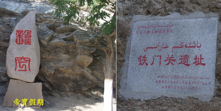 謝彬《新疆遊 記》中有"兩山夾峙,一線中通,路倚奇石,側臨深澗,水流澎湃,日夜有聲,彎環曲折,時有大風,行者心戒"的記述。《水經注》中稱鐵門關所在的峽谷為"鐵門關",後人叫它"遮留穀"。