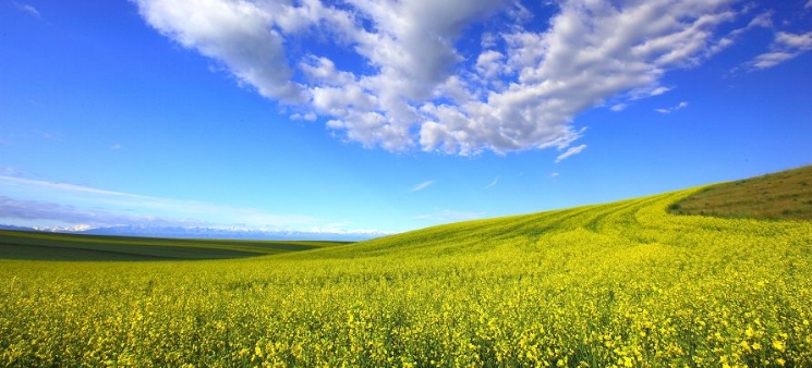 近看油菜花是一種對開四瓣、花面呈十字形的花朵,中心有一小叢黃綠色的花蕊,這小花呈叢狀分布於油菜的莖杆頂端約10釐米的範圍,單獨的欣賞一株油菜花,在細細的莖杆上開出的一連串的金黃色小花,這是一種最平常不過的花朵了,但是,七月你來到昭蘇,到了油菜花開的季節,他們以整體的形像、巨大的規模、純淨的顏色、整齊劃一的高度,把昭蘇大地塗抹成一片明麗的黃色時,當你站在高坡上,你可以盡情領略油菜花所構建多姿多彩的圖畫,看天地造化之神奇,看天光雲影在波浪壯闊的油菜花海中徜徉的壯美
