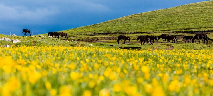 昭蘇縣是一個群山環抱的高位山間盆地,面積1.1萬平方公裡,轄9鄉1鎮、6個國營牧場,居住著哈、漢、蒙、維等21個民族,總人口14.5萬,境內有伊犁種馬場、昭蘇軍馬場、昭蘇林場等單位。 昭蘇地區屬大陸性溫帶山區干旱半濕潤冷涼型氣候,冬長無夏,春秋相連。特克斯河橫貫全境,水資源豐富,宜農宜牧,水草豐茂,發展農牧業有得天獨厚的優勢。昭蘇出駿馬,“騰昆侖、歷西極”,被漢武帝賜名為的“天馬”,就源於此地。