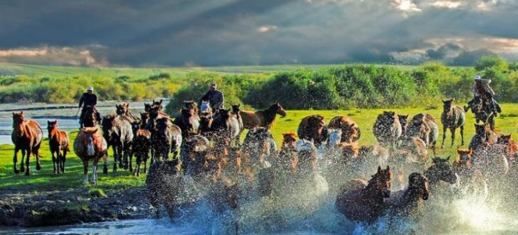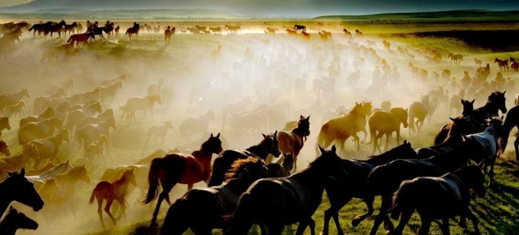 我國古代所謂的天馬、西極馬、胭脂馬等名馬,皆產於西域。“胭脂馬”是指焉耆馬,“天馬”、“西極馬”即烏孫馬。漢武帝曾作《西極天馬歌》雲:"天馬徠兮從西極,經萬裡兮歸有德……"千古傳為佳話。 素有“騰昆侖,歷西極”之美譽的伊犁是天馬的故鄉。