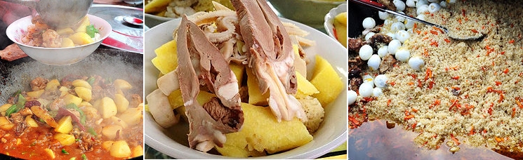 大盤雞、烤全羊、烤羊肉串、馬肉、馬腸、羊肉手抓飯……“終於吃到了用羊肉做的羊肉串”而且這羊還是在一望無際的大草原上,在藍天白雲雪山腳下無憂無慮長大的。正宗的烤羊肉串也色澤焦黃油亮,味道微辣中帶著鮮香,不膩不膻,肉嫩可口。