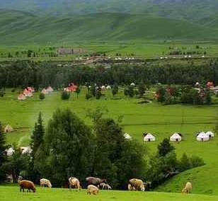 那拉提草原是世界四大草原之一的亞高山草甸植物區,自古以來就是著名的牧場,具有平展的河谷、高峻的山峰,深峽縱橫、森林繁茂、草原舒展交相輝映,並同當地哈薩克民俗風情結合在一起,成為集觀光、 遊覽、科學考察、休閑娛樂、避暑度假、購置紀念品為一體的旅遊觀光度假區。