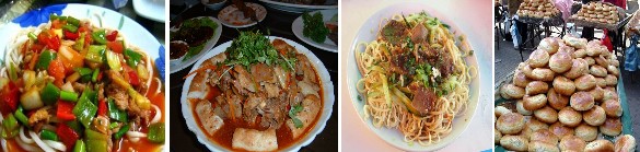 新疆的地方飯菜口味偏重,肉食量比較大,清真餐廳主要供應拌麵、抓飯、馕、燒烤等食品!漢餐廳以川味居多,遍布全疆,口味偏辣!
