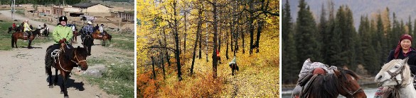 若只租從賈登峪到禾木就要加收馬匹從禾木回賈登峪的錢,若要在禾木多待一天就要多收一天等候的錢。」禾木、喀納斯、白哈巴也有馬隊,而且價錢和其他條件的彈性也比較大,但缺點是這幾個地方的馬沒賈登峪多, 馬伕(嚮導)的專業度也稍嫌不足,有時候租到的馬可能是所謂的黑馬,也就是沒參加馬隊沒保險的馬,對遊客比較沒保障,而且這些馬在遇到定點稽查時可能會有麻煩...