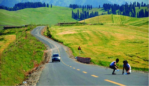 草美、水美、山更美,冰消雪化,溪水潺潺,像一個剛剛睡醒的少女,雪峰送爽,雪蓮飄香,綠色鋪滿山坡,山花吐芳,生機昂然。漫步江布拉克,早已忘記夏日酷暑,喝著聖泉聖水,看著草原風光,聽著山風歡唱;興起時登綠坡險峰,體驗怪坡奇景;休憩間品嘗農家野菜小吃,感受濃郁的哈薩克族風情。 徜徉江布拉克,鳥兒叫,羊兒跑,馬兒跳,涼風習習,清爽宜人,好一片招人喜愛的避暑勝地。