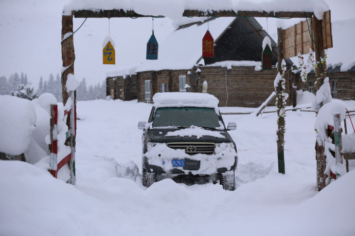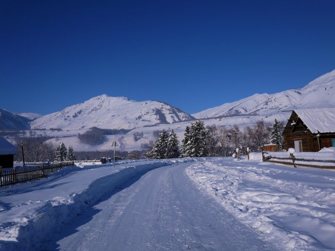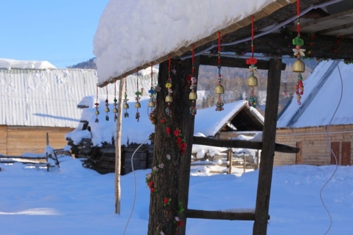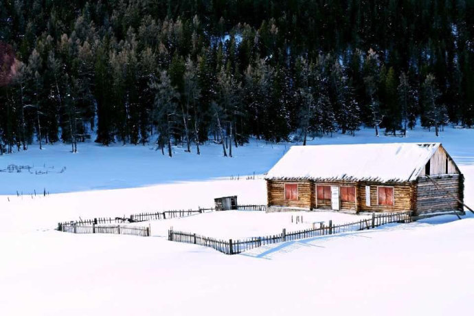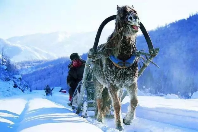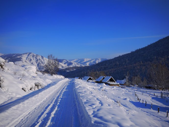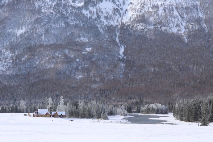 堆滿積雪的小木屋就像童話中的小房子,山間忽而跑過一群馬兒,轉眼又隱入山林,讓人恍若世外仙境。
