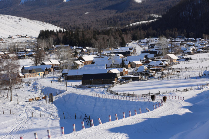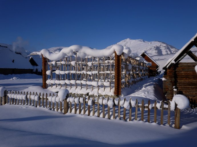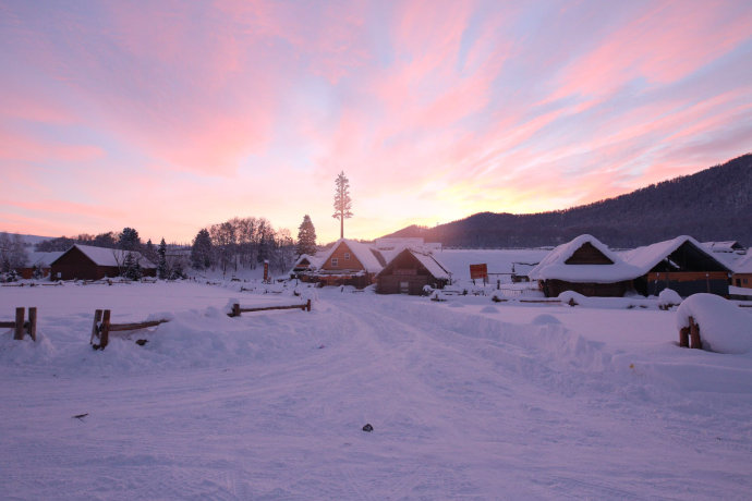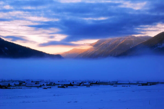 冬季清晨的白哈巴村給人一種神秘感和震撼