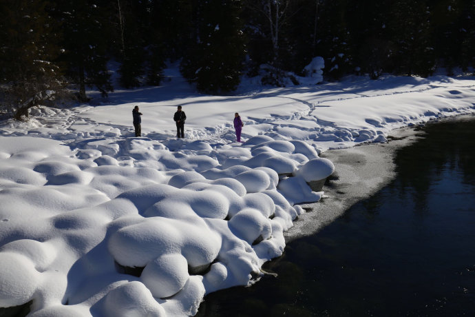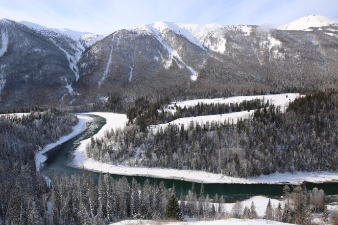 沿喀納斯河一路拍攝嬌美如畫的“霧凇”,冰水交融的“雙橋”,穿上銀裝的“臥龍灣”“月亮灣”“神仙灣”