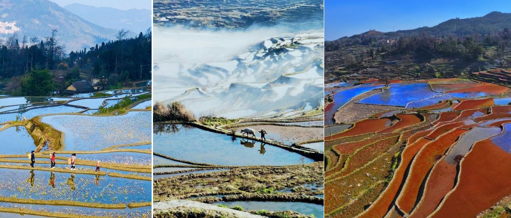 箐口梯田 它被譽為“霧中仙境”,清晨的箐口還蒙著一層厚實的迷霧,灰濛濛的沒有透亮,遠處的梯田被迷濛包圍著,如水墨畫。拍完日出後前往箐口民俗村拍攝:蘑菇房、石磨、水車、芭蕉、山間小徑、梯田、哈尼半山村落等素材,拍完日出後,我們繼續前行去【愛春】、【黃草嶺】等地方繼續拍攝,這些個地方有很大的可能可以拍攝到藍梯田,稍作休息後就去【倮馬點梯田】、【全福莊梯田】、【壩達梯田】自由拍攝。