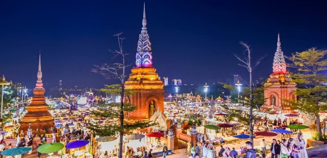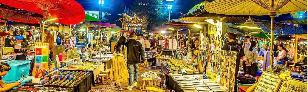 夜色降臨,華燈初上,大金塔就成版納一顆璀璨的“明珠”,明亮又耀眼! 大金塔身後,有幾百家攤販,無言六色的油紙傘,配合著燈光,形成獨特的東南亞夜市風情,十分壯觀浪漫,不用去泰國,就能看到南亞風的夜市!每個攤位整齊的擺放著特色手工藝品、民族服飾、民族樂器.....品種繁多,琳瑯滿目,看得人眼花繚亂~這是一個讓人來了就不想離開的地方,每個角落都充滿了“激情”和“誘惑”,每一處都顯露出了告莊西雙景繁華和人氣的旺盛。