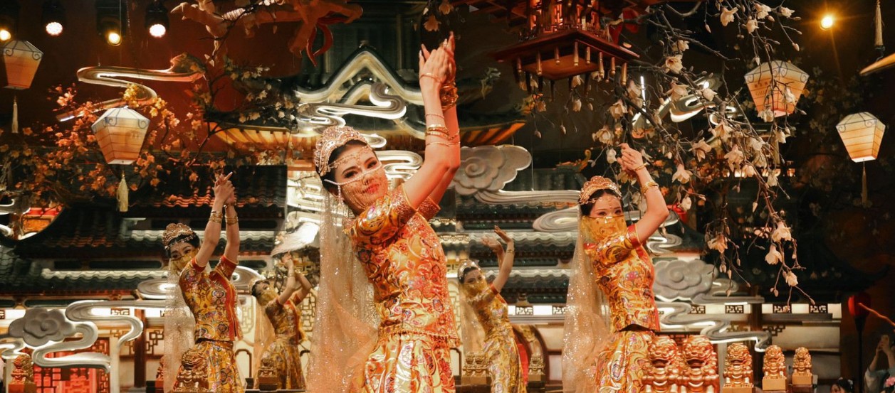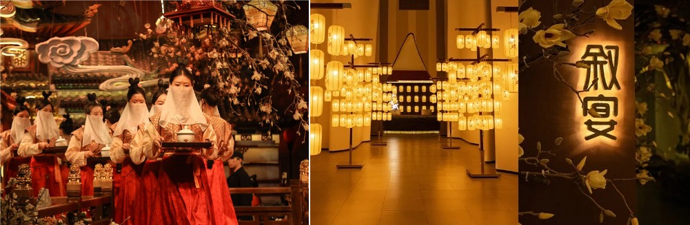 "敘宴"是一場融合了唐代宮廷宴飲、傳統歌舞表演、漢服體驗與現代光影技術的沉浸式文化晚宴。它旨在讓賓客彷彿穿越時空,回到大唐盛世,享受一場視覺與味覺的盛宴。