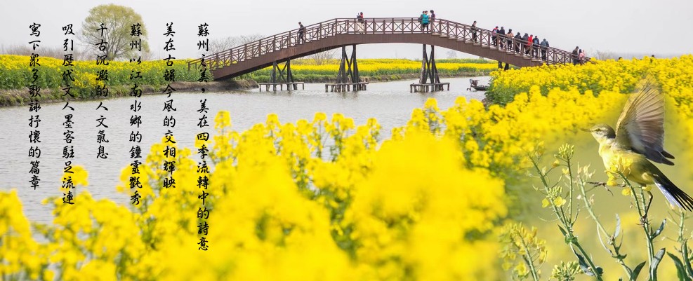 蘇州,是中國著名的歷史文化名城和風景旅遊城市,擁有 2500 多年的悠久歷史和燦爛文化、得天 獨厚的人文景觀和自然環境,更是聞名海內外的園林之城、工藝之市、絲綢之府、魚米之鄉、生態福地。今日的蘇州,以古典與時尚同步、江南風情與歐美風格共存、城市與鄉村聯動發展的獨特魅力,展示「天堂蘇州、東方水城」無限風采。