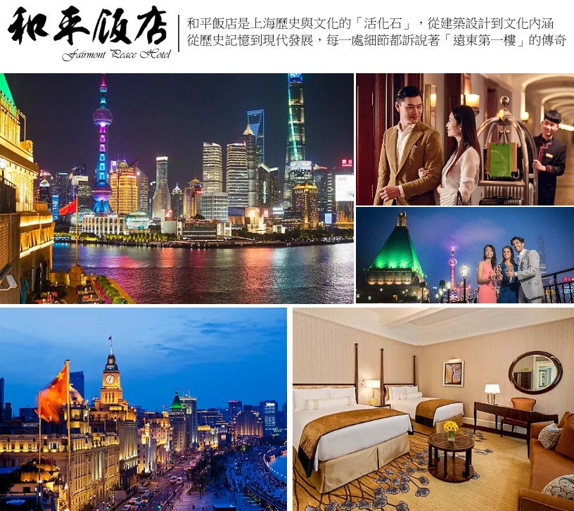 "穿越百年風雲,和平飯店矗立外灘金三角,從華懋飯店到城市名片,Art Deco的銅頂輝映黃浦江,見證《孫文越飛宣言》等歷史瞬間,九國套房與金字塔頂訴說上海傳奇。"