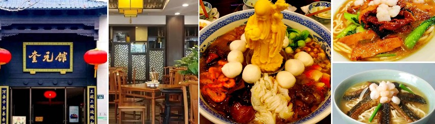 米其林-奎元館金玉滿堂宴 奎元館(解放路店),這家擁有157年歷史的老字號麵館,以其精湛的麵條製作技藝和獨特的「坐面」技法聞名於世。奎元館是《小李飛刀》《陸小鳳傳奇》等武俠小說的常客,更是大俠們的高級食堂。 英雄們常在此處暢飲美食,或回味店家的包子和蝦爆鱔面。而當大俠們表達善意時,他們並不會在櫃檯前爭搶付賬,而是悄然結清奎元館的酒菜賬,以此彰顯他們的豪邁與慷慨。 從1867年創立至今,奎元館始終堅守對美食的熱愛與追求,成為了「城裡幫」浙菜名店中的佼佼者。其麵條製作流程繁瑣而精細,需經過十一道工序的打磨,方能呈現出柔滑不黏、口感絕佳的美味。而蝦爆鱔面與片兒川更是奎元館的招牌之作,前者烹調考究,麵條與蝦、鱔的搭配讓人回味無窮;後者配料精良,融合了腿肉、竹筍與雪裡蕻的鮮美,色澤誘人、香氣四溢。