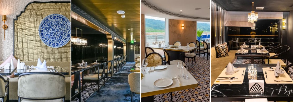 遊輪配有四間風格各異的餐廳及三間酒廊,涵蓋中式特色宴席與西式經典料理,可滿足不同地域旅客的餐飲需求。