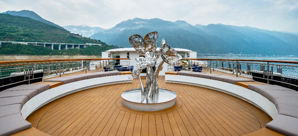 作為長江流域首艘全套房奢華遊輪,以「全船即頭等艙」理念,精準錨定追求極致舒適旅行體驗的客群。 為全方位滿足這一高端客群的需求,設計團隊從空間佈局、外觀造型、設施配置三重維度發力,以系統性設計建構高品質旅行體驗體系。