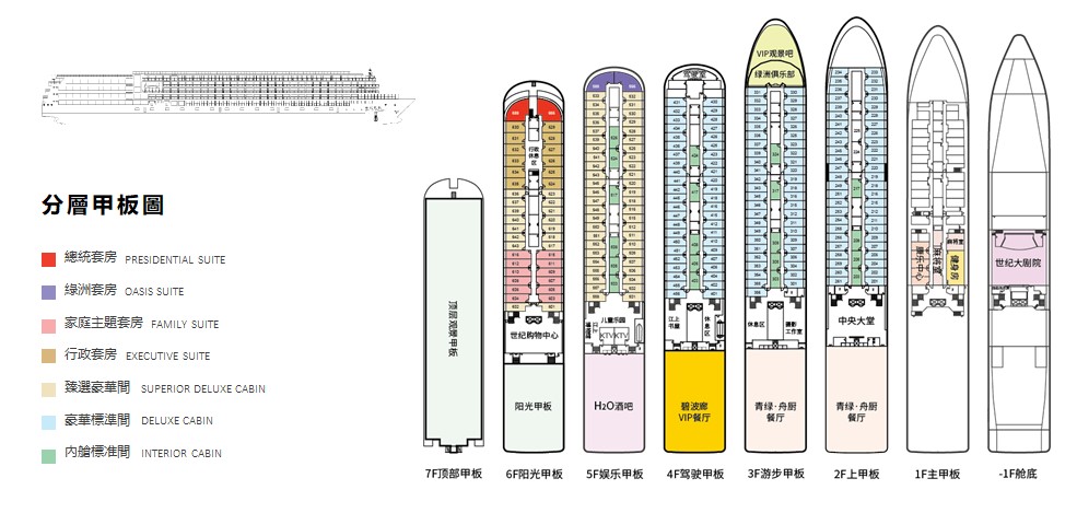 2、以上價格均為單人船票價格,臻選豪華間及套房類房型不接受0.5拼房預定。