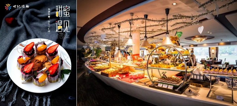 世紀的星廚團隊,每天推出一種精心烹製的主題風味美食,比如川渝麻辣風味、廣式粵菜風味、江南淮揚風味、荊楚魚米風味等等中國珍饈;不僅如此,從登船之夜起,即為賓客貼心準備了遊輪國際自助晚餐,以豐盛的美食為您開啟長江之旅。