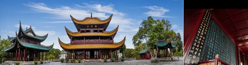 潯陽樓,江南十大名樓之一,因九江古稱潯陽而得名,初為民間酒樓,至今已有 1200 年的歷史,是溶名樓、名著、名酒為一體的景點。潯陽樓之名最早見之于唐代江州(今江西九江)刺史韋應物的詩中。隨後,白居易在《題潯陽樓》詩中又描寫了它周圍的景色,而真正使潯陽樓出名的是古典名著《水滸傳》。小說中的宋江題反詩、李逵劫法場等故事使潯陽樓名噪天下。