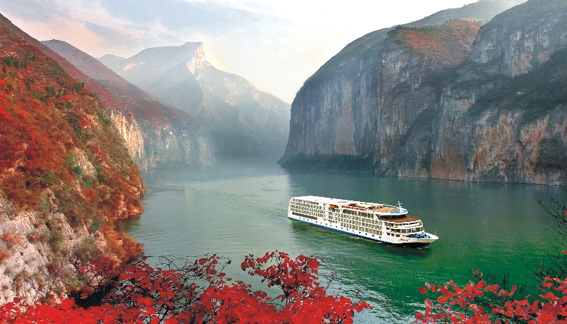 07:00-08:30 遊輪中西自助早餐 約11:00 「三峽七百里,唯言巫峽長」——巫峽秀,甲板觀景 巫峽綺麗幽深,以俊秀著稱天下。它峽長谷深,奇峰突兀,層巒疊嶂,雲騰霧繞,江流曲折,百轉千迴,船行其間,宛若進入奇麗的畫廊,充滿詩意畫意。 「萬峰磅礴一江通,鎖鑰荊襄氣勢雄」是對它真實的寫照。峽江兩岸,青山不斷,群峰如屏,船行峽中,時而大山當前,石塞疑無路;忽又峰迴路轉,雲開別有天,宛如一條迂迴曲折的畫廊。巫峽兩岸群峰,它們各具特色。有詩曰:巴東三峽巫峽長,猿鳴三聲淚沾裳。