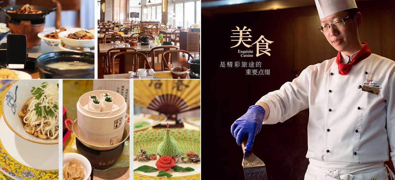 三江五湖,物華天寶。 世紀嚴選食材,星廚精心烹製,呈現各種主題的遊輪風味美食, 跨越山河,穿越長江;這是一次,邂逅舌尖美食的旅行!