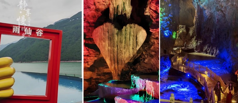 巴東雨仙谷(原無源洞)】 遊覽方式: 步行 國家 AAAA 級巴東雨仙谷(原無源洞)景區,藏著上億年石灰岩鑄就的地下秘境。溶洞內泉湧鐘乳、曲徑通幽,宛若自然雕琢的奇幻宮殿。夜幕降臨,“巴山奇妙夜”夜遊項目以峽谷為幕,以光影為筆,用高科技聲光電與沉浸式互動演出,邀您共赴“巴山夜雨話奇緣,溶洞深處探幽境”的浪漫旅程。