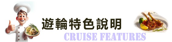 遊船特色 ˙服務態度最佳、員工服務熱誠,在中國您絕對找不到第二艘能媲美歐美人士的服務等級。 ˙餐食安排最棒,每天都有特別為您安排的主食,無論是中式餐還是西式餐。 ˙用餐品質如同在豪華西餐廳裡享用美食一樣的氣定神閑。 ˙優質的服務團隊,員工人數比遊客還多,在這裡您絕對看不到其他船上搶食的現象。 ˙最專業的歐美接待團隊,讓您在遊船上的每ㄧ天都是歡樂日。