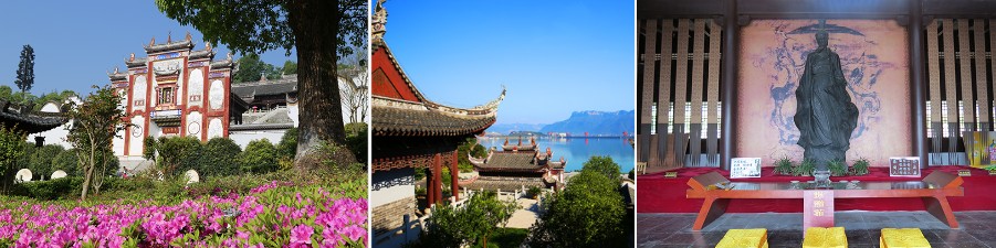 屈原祠 始建於唐元和十五年(公元820年),是爲紀念偉大愛國詩人屈原而建的。原址在歸州古城東5裏的屈原沱,後因葛洲壩和三峽大壩的興建而兩次遷建。