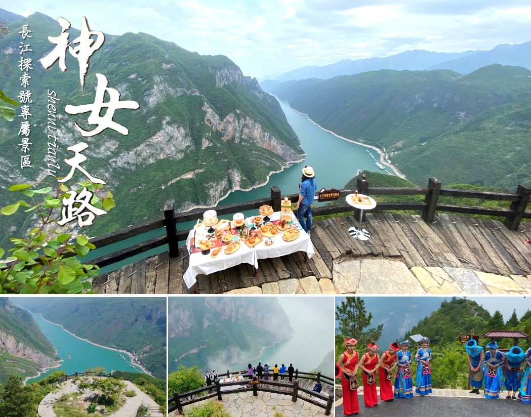中午遊覽過後返回到遊輪上享用午餐。 宋玉在《高唐賦》中寫道:“巫山赫其無疇兮,道互折而曾累。登巉巗而下望兮, 臨大阺之稸水。遇天雨之新霽兮,觀百穀之俱集。”行走在巫山神女天路,則能完美複刻賦中的場景。道路錯綜曲折、橫斜而上,人居其上,常穿行於雲霧之間。從山崖上向下望去,是奔流的長江。