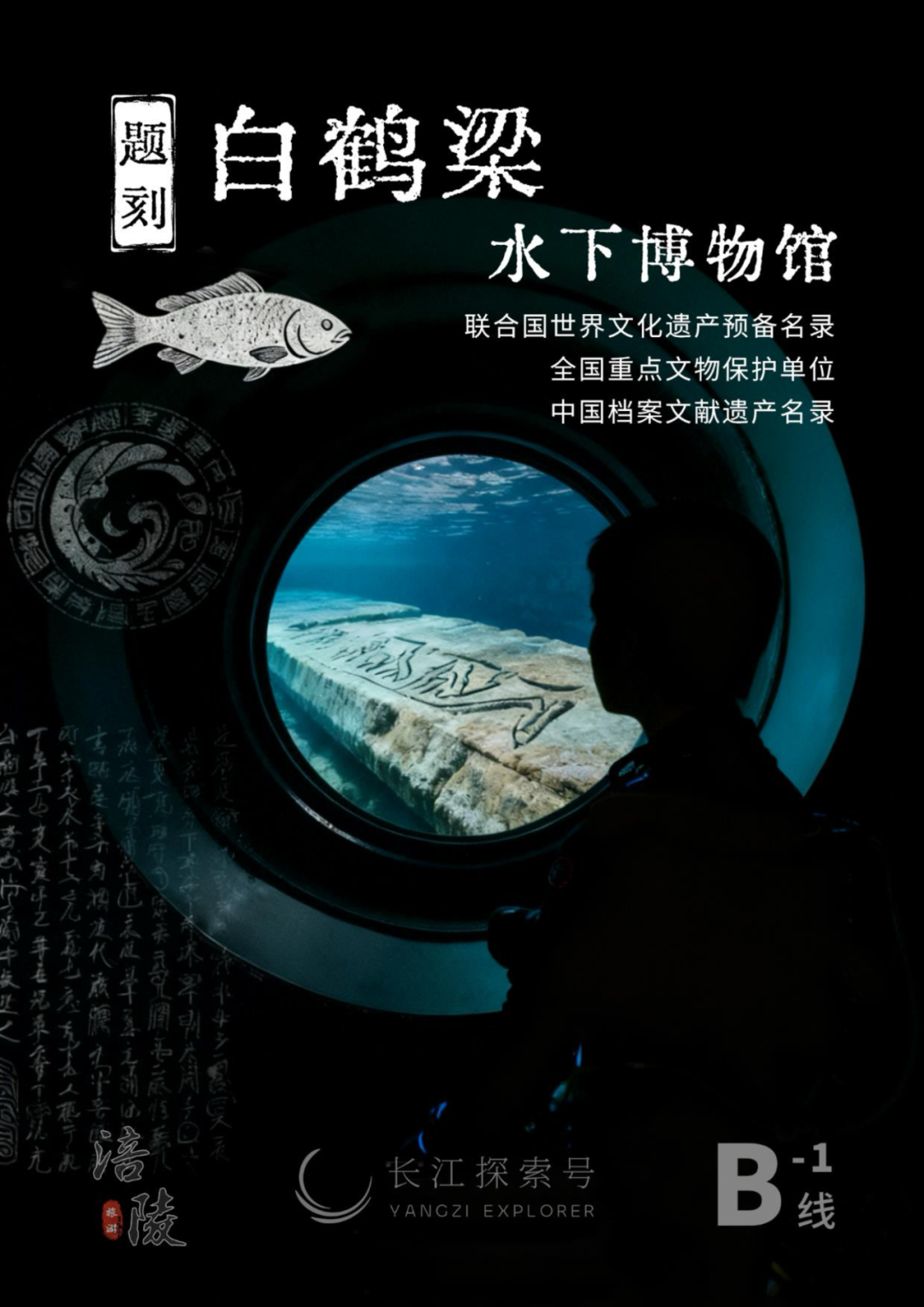 B線:白鶴梁水下博物館和當地市集 白鶴梁水下博物館 * 白鶴梁被譽為“世界第一古代水文站”、“世界水文資料寶庫”、“水下碑林”,是三峽文物景觀中唯一的全國重點文物,白鶴梁水下博物館是世界首座水下博物館。"博物館"採用“無壓容器”對水下題刻進行“原址保護”,通過水下參觀的方式,使遊客領略白鶴梁千年的歷史人文和風俗民情。