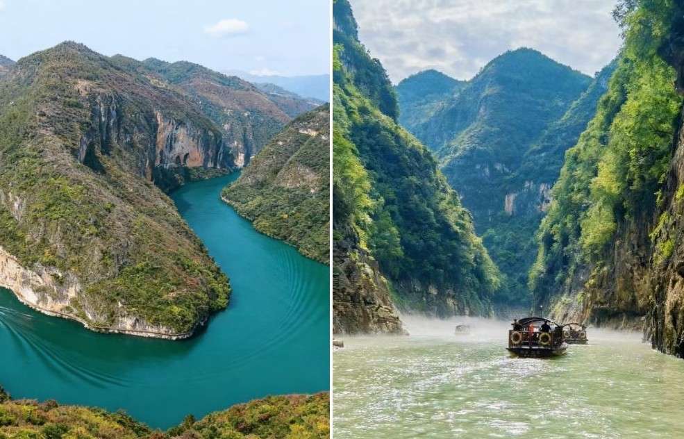 。河道驟然收窄,水流變得輕快,峭壁彷彿觸手可及。這裡峽谷更爲幽深,兩岸峭壁如削,藤蔓垂綠,宛若一條蜿蜒於 山水之間的天然綠色長廊。