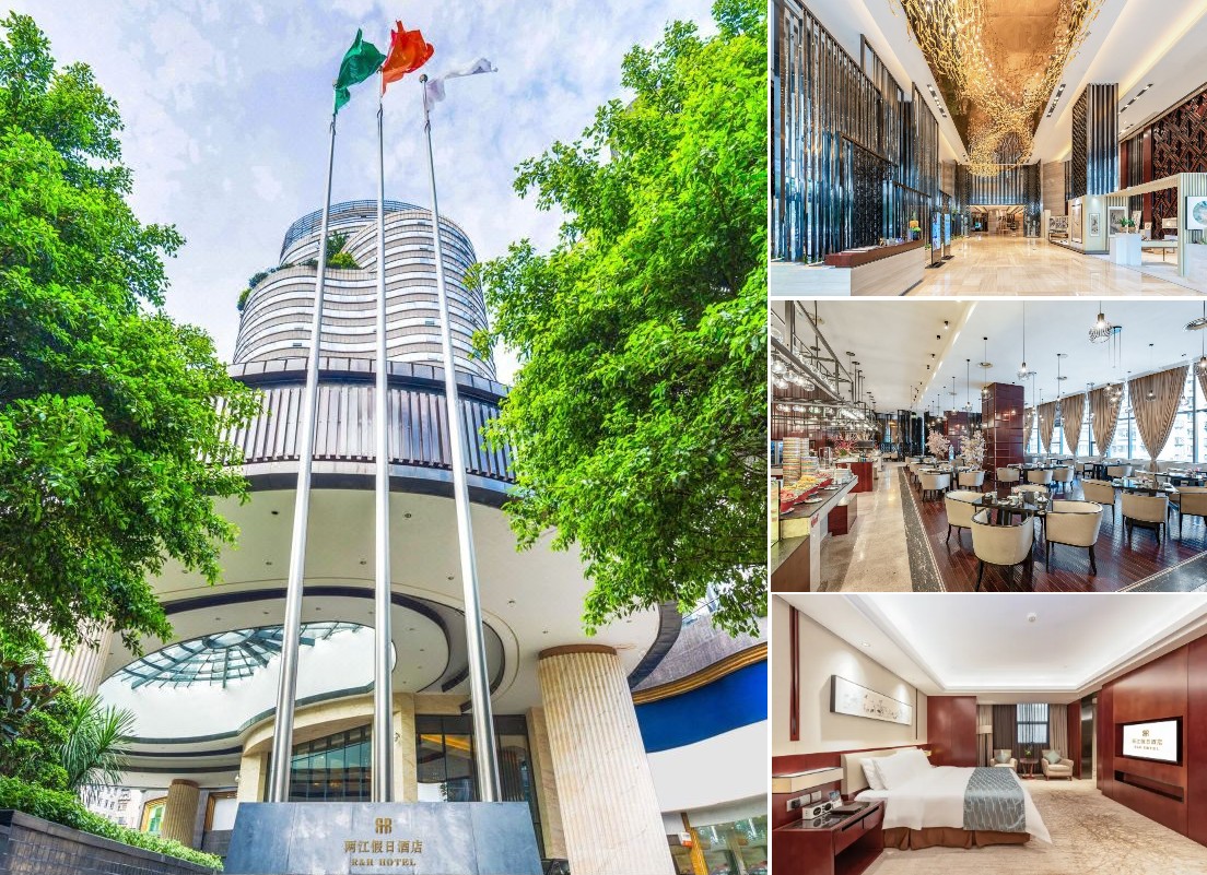 佔地36000平方米,建築面積52600平方米,坐落於國家4A級都市旅遊景區 - 重慶市江北區觀音橋商圈旁,地理位置優越,商業配套完善、購物娛樂發達、交通出行便利,距離重慶火車北站6公里,可在10分鐘內抵達北國際機場;距離北國際機場江河。 飯店整體設計舒適、定位高雅、色彩空間搭配舒適,7個尊享私人用餐的精緻空間。同時建有中餐大廳、櫻花醉餐廳、行政酒廊、健身房及大堂吧等多功能區域,並配備智能房控系統、智能樓宇控制系統以及智能機器人“潤”等先進設備,可充分滿足酒店住宿、餐飲會議消費需求,為賓客提供愉快的貼心服務和舒適入住體驗。