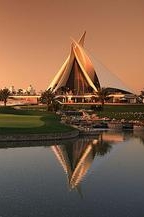 據說,球場的日常灌溉先要從附近的大海中取水,然後送進海水淡化廠加工,以便維持球場的綠草茵茵。這讓我忽然想起幾年前,曾經在我工作過的一家英國高爾夫雜志社裡見到過一張航拍照:一座高爾夫球場被周圍綿延的沙漠緊緊包裹著的景像,真是蔚為奇觀! 這個球場於1988年開放,顯然這對於日新月異的杜拜已經算很久以前的事了。而今的杜拜擁有6個18洞球場。即使這樣,我仍就認為,酋長國球場還是其中最好的。因為這裡有每年PGA歐洲巡回賽最青睞的球場設計。 球場設施完備,設計簡約而富挑戰。所有的球洞在我看來都無可挑剔,惟一能列為“缺點”的只有第18洞,開球令 “大炮球手”難以逾越,稍不留意的大力揮杆就會打穿。
