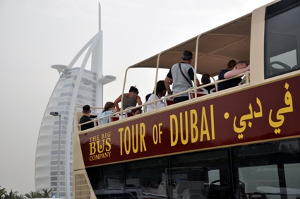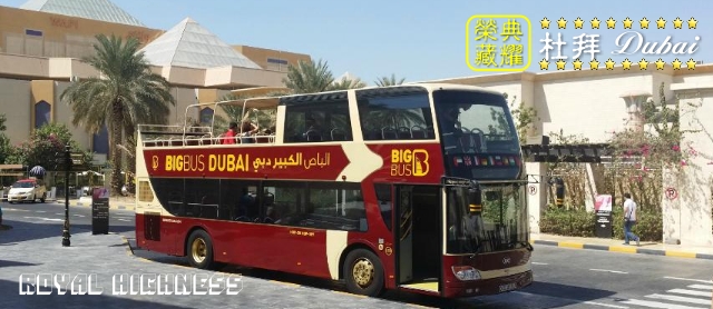 杜拜有一種著名的觀光車-Big Bus. 這是一種大型豪華雙層觀光巴士,它的舒適和安全,巴士擁有豪華舒適的座椅,並配由大屏幕液晶電視介紹,在你欣賞美景環抱的城市風光時,還能把你帶入夢境般地杜拜。