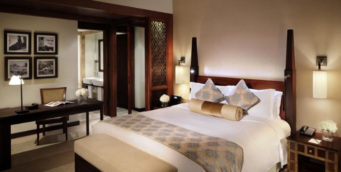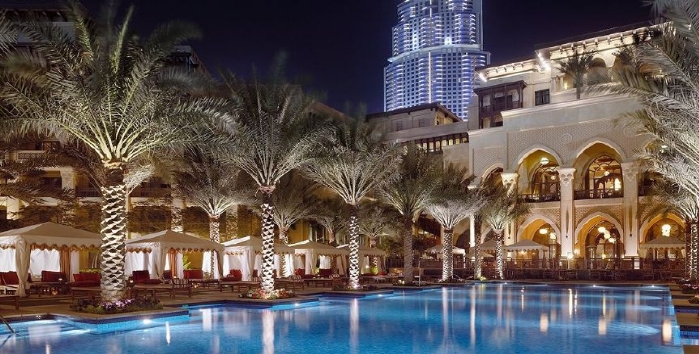 古城套房皇宮酒店 The Palace Downtown Dubai 坐落於一座富麗堂皇的傳統住宅內,旁邊就是杜拜噴泉和杜拜塔湖,哈里發塔,更有世界最大購物中心Dubai Mall和阿瑪哈市集購物娛樂中心。 整個房間頗具中東風格,宮殿式建築,寬敞實用,典雅端莊。酒店工作人員的服務態度很好且樂於助人。設有阿拉伯風格的spa和帶私人教練的健身房。