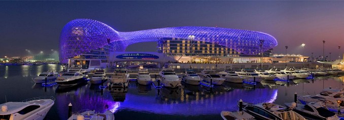 Hotel是建造在"亞斯島遊艇俱樂部"港口內和F1一級方程式賽場上,不僅是位於阿布達比Yas