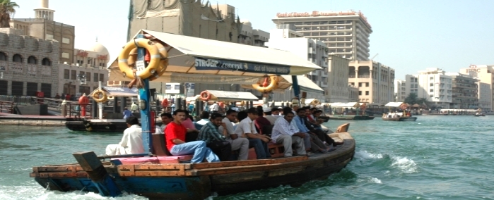 欣賞杜拜海灣最好的方法自然是置身其中。被稱為 阿巴拉 (Abras) 的水上計程車玲瓏小巧,輕盈地載著乘客從德以拉區熙熙攘攘的市集間滑入對岸。每位乘客收費不到 1 個迪拉姆,單獨乘坐阿巴拉,船夫就會在接下來的一小時裡帶您經歷一趟妙趣橫生的水上旅行。您可以從碼頭貨物裝卸點開始,駛入海灣出口,然後經過瑪克圖穆橋 (Maktoum Briage) ,進入內陸區域,沿途還可欣賞到城市中許多的著名的歷史遺跡和現代建築。