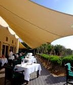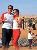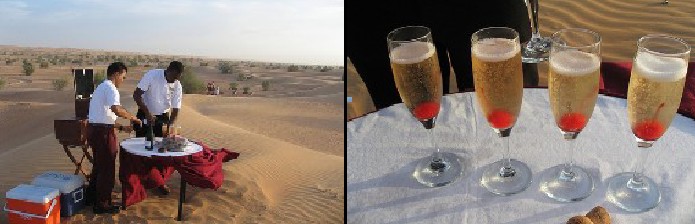 在check in 之前飯店會派一位很陽光的活動導遊 - 駕一輛寬敞的四驅車來門口接你通過度假村的兩層緩衝區,並在沿途向你簡報整個園區和兩天的行程。很多習以為常連相機都沒帶的有錢人,穿個短褲、一伸手就是一杯沁涼的香檳,伴隋著一望無際的沙漠落日... 人生的享受莫此為甚ㄚ~ ~~