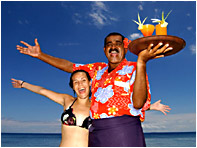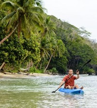 自己的海灘和大型吊床,在可視深度深50米清晰、充滿珊瑚礁的海水中浮淺、揀海參、海星、海膽、划獨木舟、釣魚。