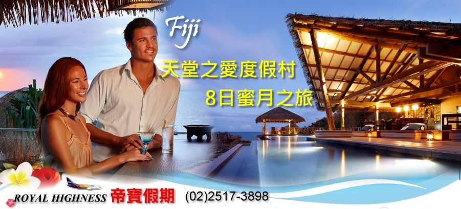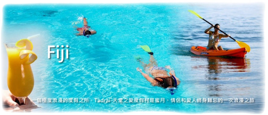 1 天 台北 - 香港 - 楠迪 (請於開立登機證時請出示個人護照正本及往返斐濟的的機票)。 斐濟群島被稱作“南太平洋的十字路口”,比爾蓋茲;席琳狄翁...等世界名人都把斐濟當做最佳度假勝地 , 這裡除了陽光,沙灘,珊瑚礁。還有斐濟人見面時"BULA"的問候語 ,都展現了斐濟人特有的親切與友善,更是每一位到過斐濟的人的衷心感受。處在南緯15度-22度,西經177度-175度間 ,國際日期變更線貫穿其中卻仍有統一的時間,這又是一件奇怪的事情。原來這條國際日期變更線剛好在附近“彎曲”,幸運的斐濟人省去了變換時間的麻煩。斐濟群島共有332個島嶼組成 ,面積18,333平方公里。 斐濟給人的第一印象是壯麗島嶼細白沙灘、迎風搖曳的椰子樹與純淨的海洋,也被譽為熱帶島嶼中的天堂,更有「世界最快樂的國度」、「世界軟珊瑚之都」、「世界十大必遊海灘」、「世界十大蜜月勝地」等美稱 ,獨特豐富的南洋文化和豐饒肥美的海鮮,吸引許多歐美旅客前往。斐濟由333個島嶼所組成,多數是珊瑚礁環繞的火山島,僅三分之一有人居住,其中維提島(Viti Levu)是最大島,住了全國四分之三的人口,當地人天真燦爛的笑容、慷慨好客的個性、悠閒樂活的慢活風格及熱情洋溢的歡迎儀式讓許多旅客留下感動又難忘的經驗!