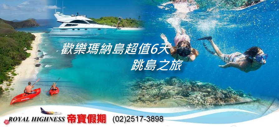 Laucala頂級6日∣超值斐濟6日遊 ∣ 歡樂跳島帆船6日∣歡樂瑪納島6天跳島遊∣天堂之愛蜜月6日∣貝卡環礁蜜月休閒6日 Laucala頂級8日∣超值斐濟8日遊 ∣ 歡樂跳島帆船8日∣歡樂瑪納島8天跳島遊∣天堂之愛8日蜜月∣貝卡環礁蜜月休閒8日 瑪納島簡介: 位於斐濟,在南太平洋的中心地帶,180度經線貫穿其中,正好跨越東,西半球,因而成為世界上既是最東,又是最西的國家,也是地球上最早目睹太陽 升起的地方之一。 到瑪那島盡情享受南太平洋小島的陽光、白沙、海水,浮潛是最好的選擇。柔美的藍天,五彩斑斕的沙子,礁石,珊瑚,在陽光的折射下會使海水變得五顏六色。 在 海裡游泳,除了和你一起遊的魚還有似乎只在電視上才看到過的十字海星,小海馬,虎皮斑紋貝。也許你會以為是掉進了水族館裡,但這些都真實地呈現在眼前。