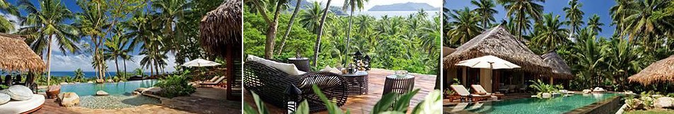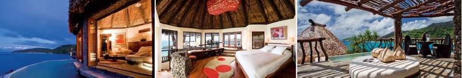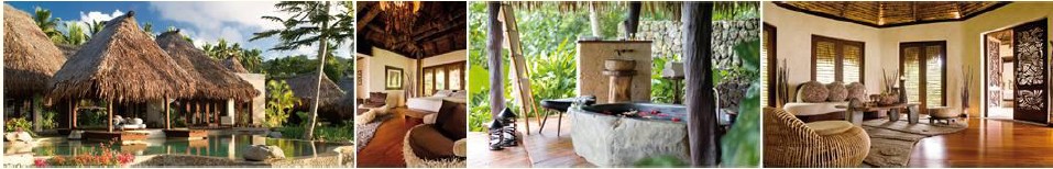 直望海灣、峭壁景色和鄰近的小島,浸在泳池內,迎面吹來的是南太平洋溫暖的海風,遠眺碧綠的海水,和湛藍的天空;加大的浴缸和淋浴空間,提供給您舒適的洗澡體驗。這個區域只有四間別墅,而別墅內有三間房,非常適合較多人的 家庭或是朋友前來居住。