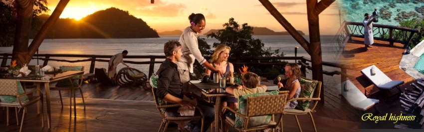這是一個非富即貴的專屬私人島嶼。在Laucala所有的服務裡,都是圍繞著尊貴的住客本身,為住客創造絕無僅有的舒適愉悅的體驗。這裡幾乎來過世界各國的名流,度假村永遠不會告訴您有誰來過,一是因為隱私在這裡被視為至高無上,二來他們早就不需要通過名人來吸引住客的了。 今晚就讓我們在座落於懸崖上,三面臨海的無邊際海景,只有六個位置的戶外鐵板燒裡享受晚餐。以西式調理方式依當季當日食材調配菜色,這樣的獨特元素,只有在南太平洋 Laucala Island in Fiji 被「唯一」的呈現出來。 住宿度假村、三餐可自由選擇在五個餐廳的其中之一來享用豐盛的美食,還可盡情享用渡假村提供之紅、白酒、雞尾酒、烈酒,礦泉水及氣泡式各式飲料。