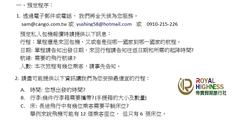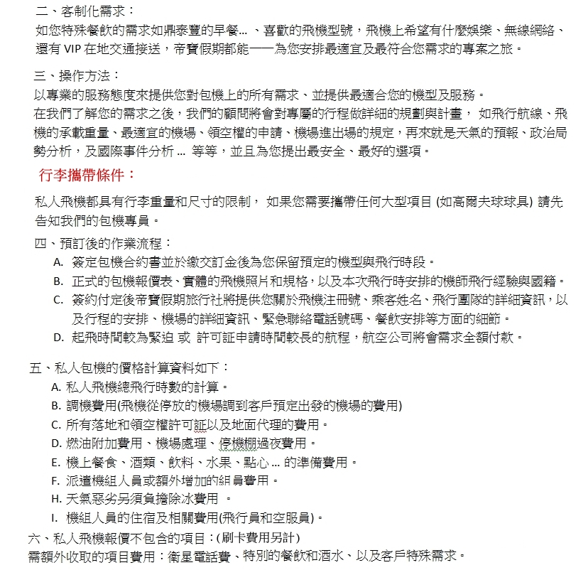 ® 機型介紹 ® 常見問題 ® 登機作業 ® 服務條款 ® 斐濟富貴島旅遊 (例) ® 杜拜旅遊 (例) ® 預訂方法 ®