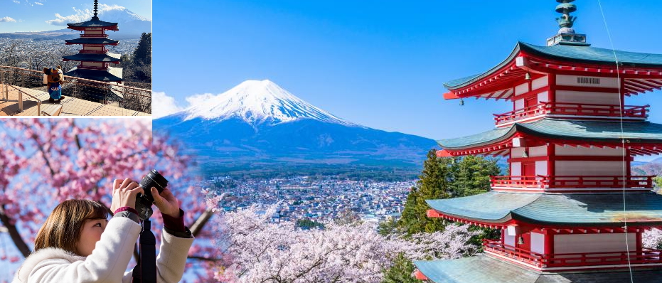 新倉山淺間公園 位於新倉山的中部,是一處以美麗的富士山遠景而聞名的公園,同時也是一個賞櫻勝地。每到春季,公園開滿了染井吉野櫻花。園內矗立的五重塔、富士山與滿園怒放的櫻花,可謂是典型的日本美景。 公園也被評為“全世界攝影師在死前一定要去的21個地方”之一,世界各國的攝影師和遊客為了觀賞這幅景緻紛至沓來。其實不僅是春天,這裡秋天的紅葉景緻和冬天的雪景也非常漂亮。除了欣賞富士山的絕景,還可以俯瞰極富魅力的富士吉田市內的街景。 備註: 12月1日-次年4月25日五合目封山期間,改為【新倉山淺間公園】 新倉山淺間公園在富士吉田市,是屈指可數的富士山觀光景點之一。櫻花盛開的季節,為了將富士山和櫻花一同攝入鏡頭,攝影師、家族、情侶等不同人群來到公園,並為不勝美景而喜笑顏開。在公園入口有新淺倉山淺間神社,參道上燈光明亮。